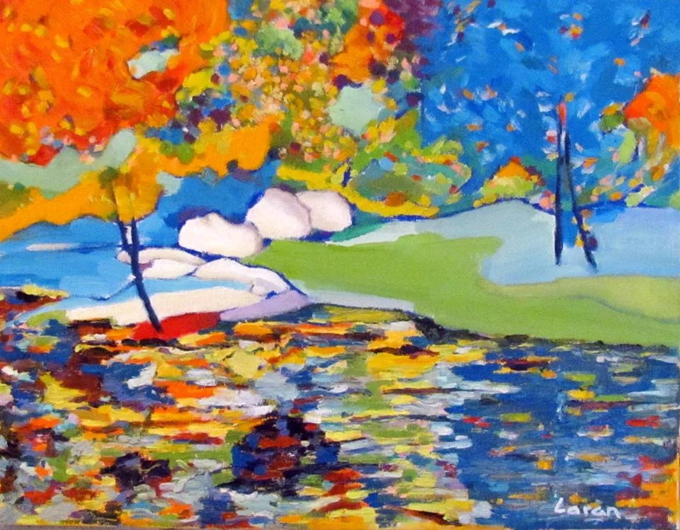 This past summer my sister, Ilde, and me took a day trip to visit Yves where I picked up my first purchased piece of fine art titled "Beauty of Nature" seen below of a river scene in St. Jacobs Country. I absolutely love the happy feeling colours and the motion of the leaves. I feel like the trees are dancing for me.