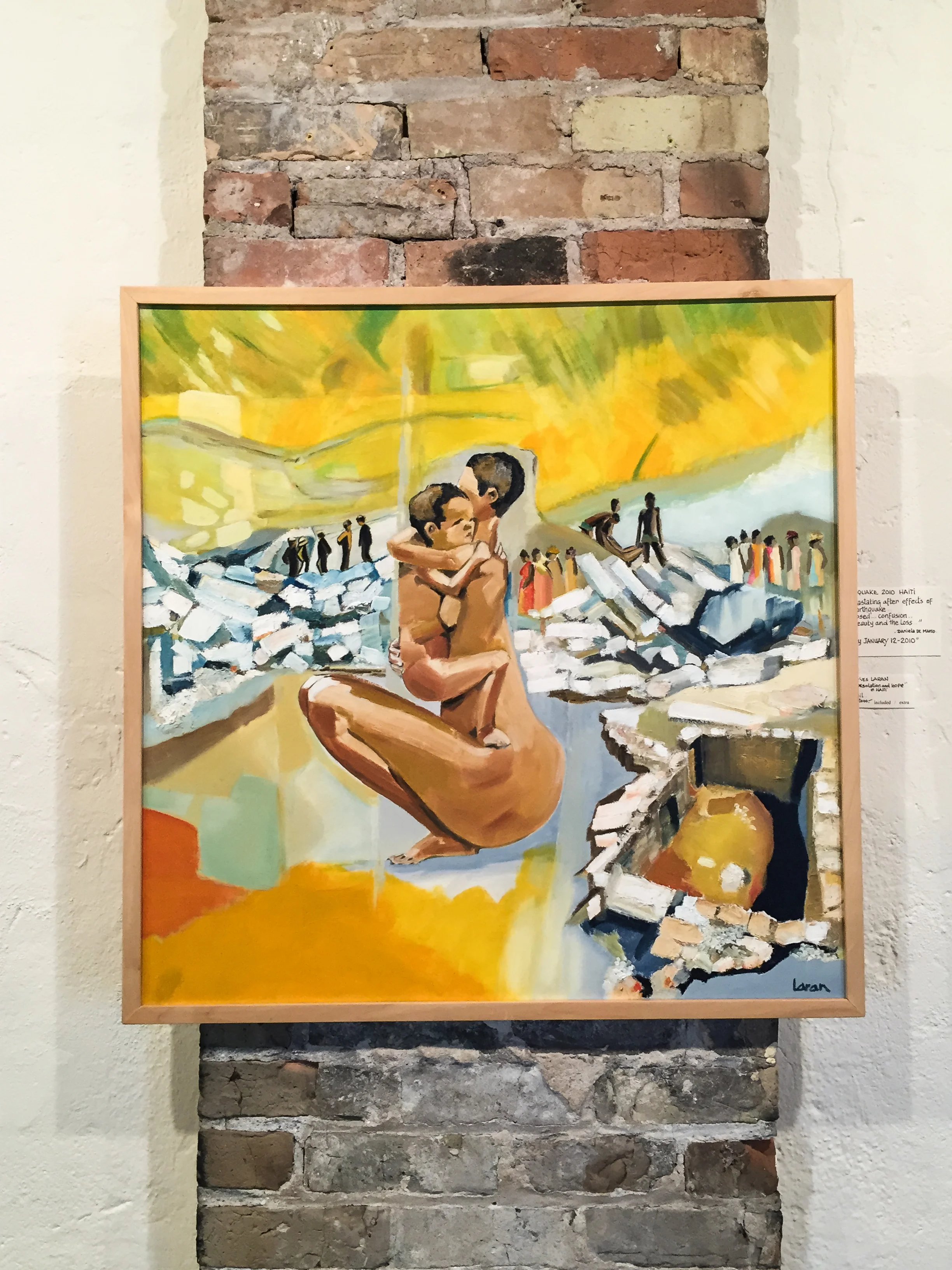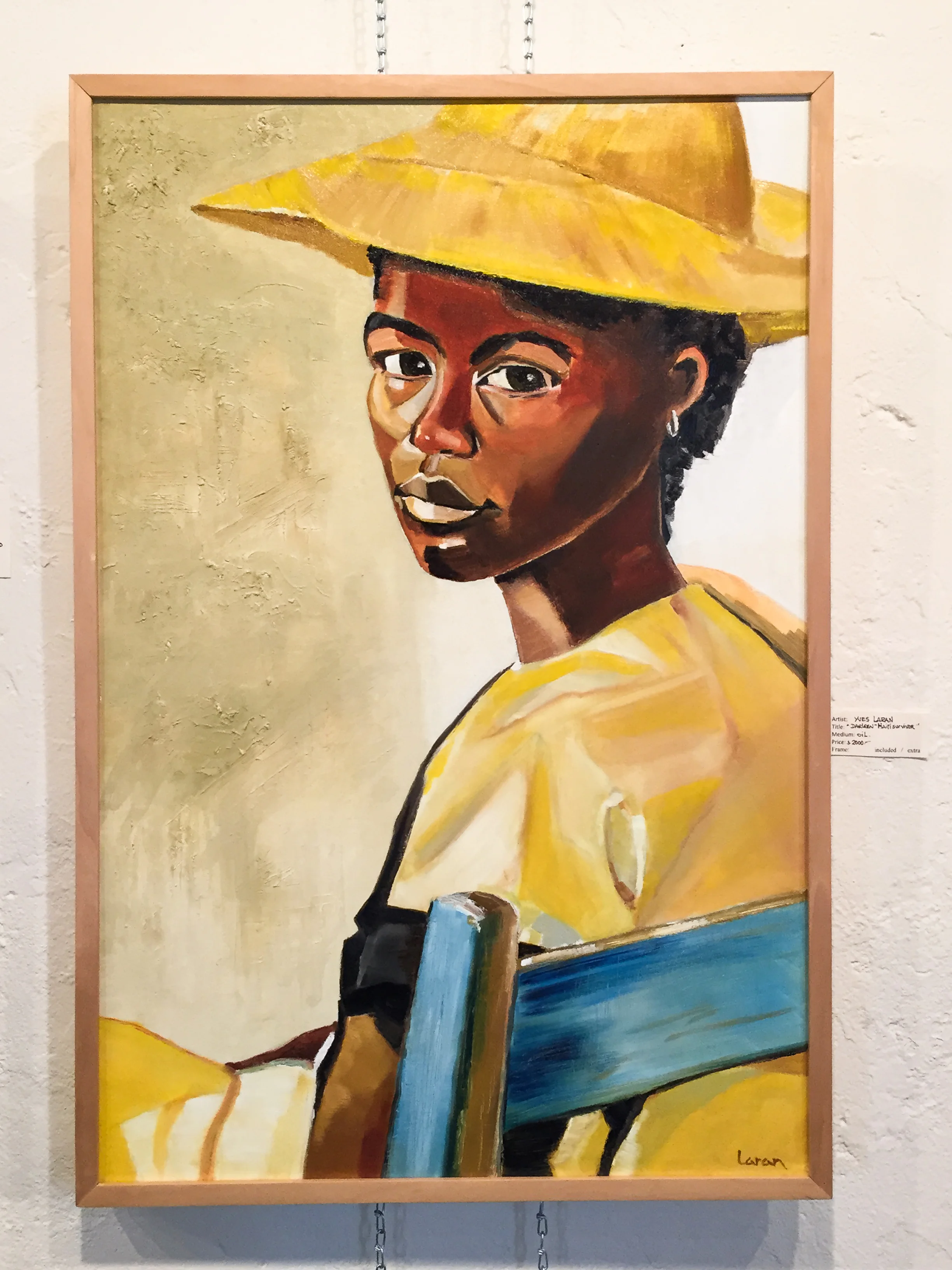 Like Nadia, Yves Laran had the urge to help the people of Haiti the best way he knew how. Through art. Thinking of his Haitian friend from his sunny Miami days as a sculptor he painted "Darleen" on a 28"x36" canvas. Using rough oil textures with his warm and bright tones he captures the hopeful gaze of a young Haitian girl who survived the horror and experienced so much pain.